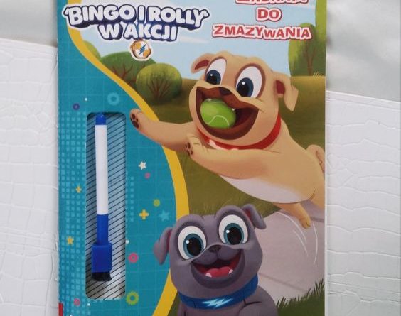 Pieski, a raczej bajkę o dwóch małych mopsiakach moje dzieci bardzo lubią. Kiedy okazało się że są książeczki z Bingo i Rolly’m musieliśmy mieć choć jedną. Książeczka zadania do zmazywania to propozycja od Wydawnictwa AMEET.