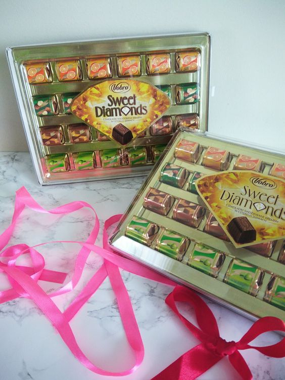 Czekoladki, kto nie lubi być nimi rozpieszczany. Dostajemy je w prezencie lub po prostu sami kupujemy. ja kupuję często słodkości. Lubię być przygotowana na niespodziewanych gości. Sweet Diamands i Cherry Diamants to propozycja czekoladek prezentowych od Vobro.