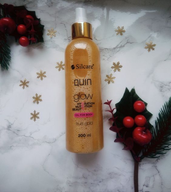 Quin Glow Dry Oil to suchy olejek do ciała z drobinkami złota. Bardzo szybko się wchłania, nie pozostawia odczucia lepkości i nie zatyka porów. Dzięki zawartości oleju z pestek winogron produkt ma właściwości nawilżające oraz chroni i wzmacnia skórę. Quin Glow Dry Oil nadaje skórze blasku, podkreśla opaleniznę i naturalny koloryt skóry oraz sprawia, że Twoje ciało wygląda piękne. Zapach słodkich cytrusów z akcentem kwiatowym sprawia, że stosowanie olejku to czysta przyjemność.