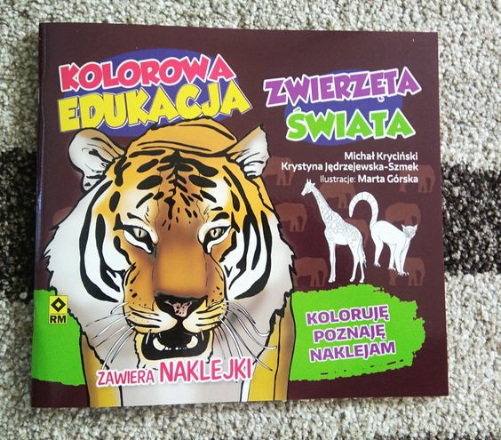 Książeczka kolorowanka z czarno białymi obrazka oraz opisem zwierzęcia. Podoba mi się opis. Napisany jest w ten sposób, że to właśnie zwierze przedstawione na obrazku samo opowiada o sobie. Jest bardzo zachęcające do słuchania przez dziecko. Dołączone do książeczki naklejki podpowiadają dziecku w jakich kolorach jest zwierze. Może nie koniecznie jak należy je kolorować, bo w naszym przypadku córeczka dobiera sobie sama kolory i koloruje je tak jak sama uważa.
